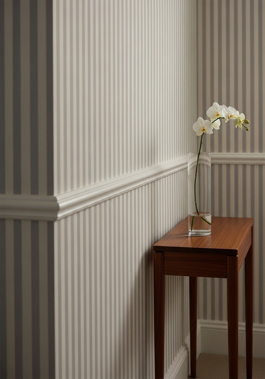 3. Fine-Scale Striped Wallpaper on a Narrow Wall