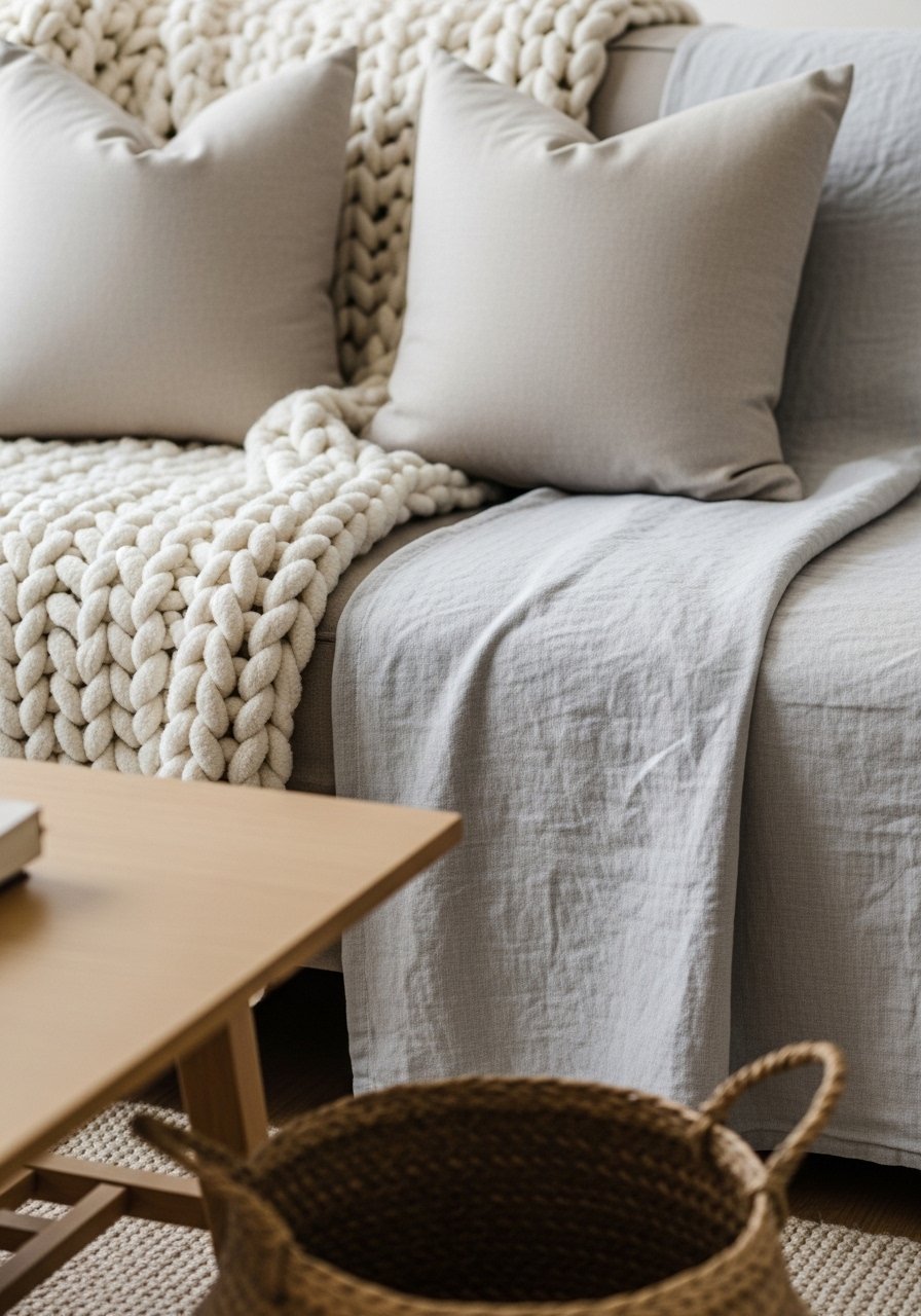I stopped buying matchy sets and started layering throws and pillows in the same family. A linen pillow, a chunky knit, and a thin patterned lumbar suddenly felt curated. The sofa stopped looking like a single giant object and more like several pieces breathing together.