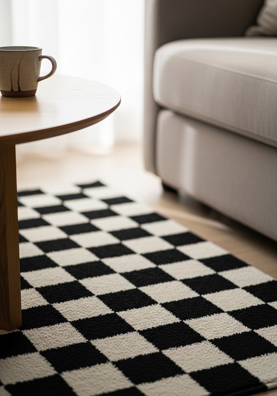 9. Checkerboard Rug to Simulate a Classic Floor