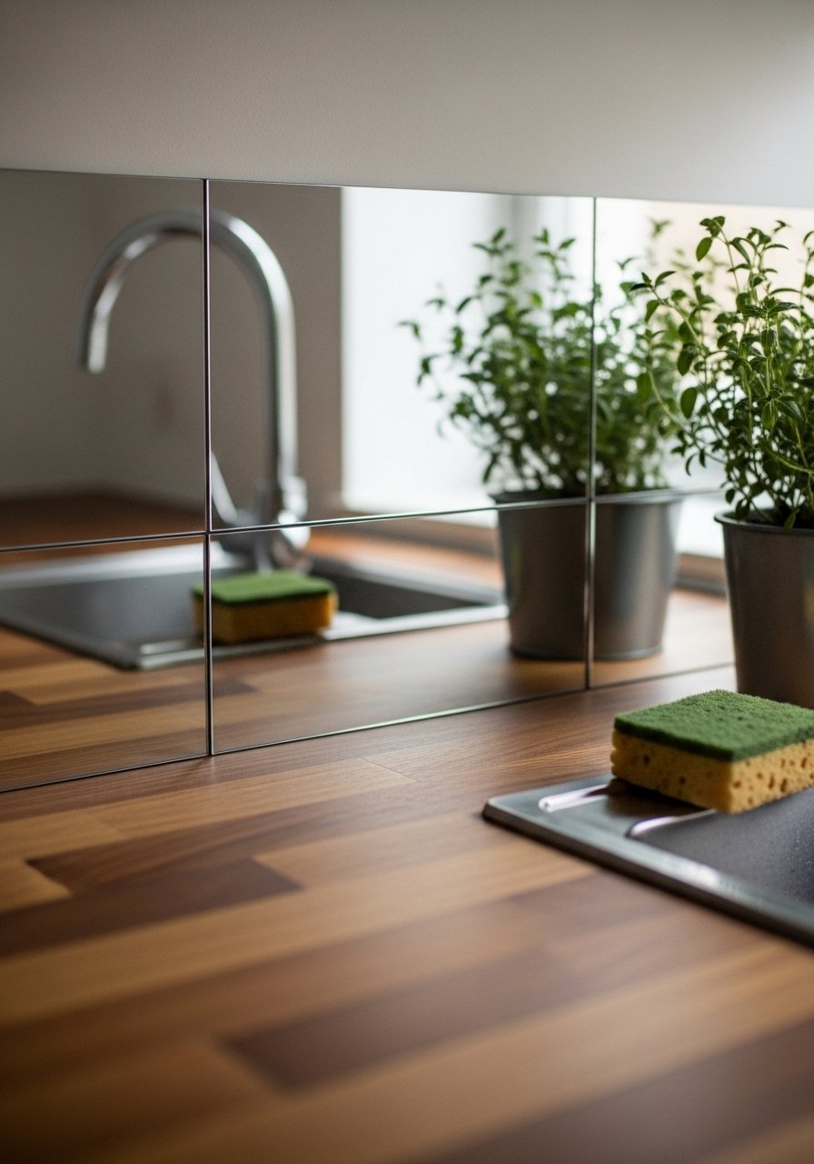 I used peel-and-stick mirrored tiles on my rental backsplash and it brightened the whole kitchen. The reflection made the small galley feel wider and less like a corridor. It also helped bounce evening light so the space feels warmer.