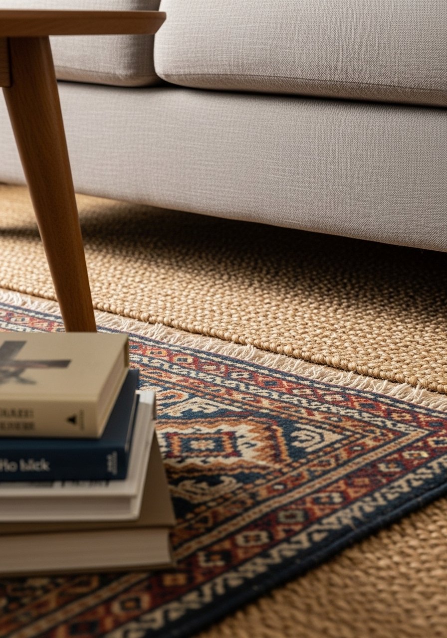 I ordered a low-quality rug once; it looked cheap and slid around. Choose a low-profile woven rug with a non-slip pad. Keep other patterns simple so the rug can read like a strong base.