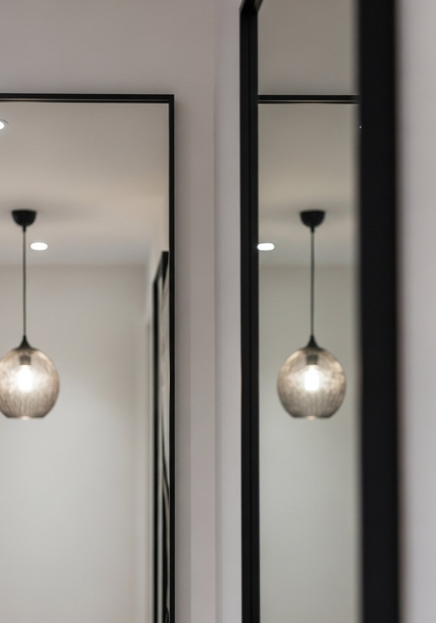 I learned that heavy frames make the space feel formal. Keep frames thin and simple. Two mirrors facing each other create a gentle corridor glow that’s surprisingly comforting.