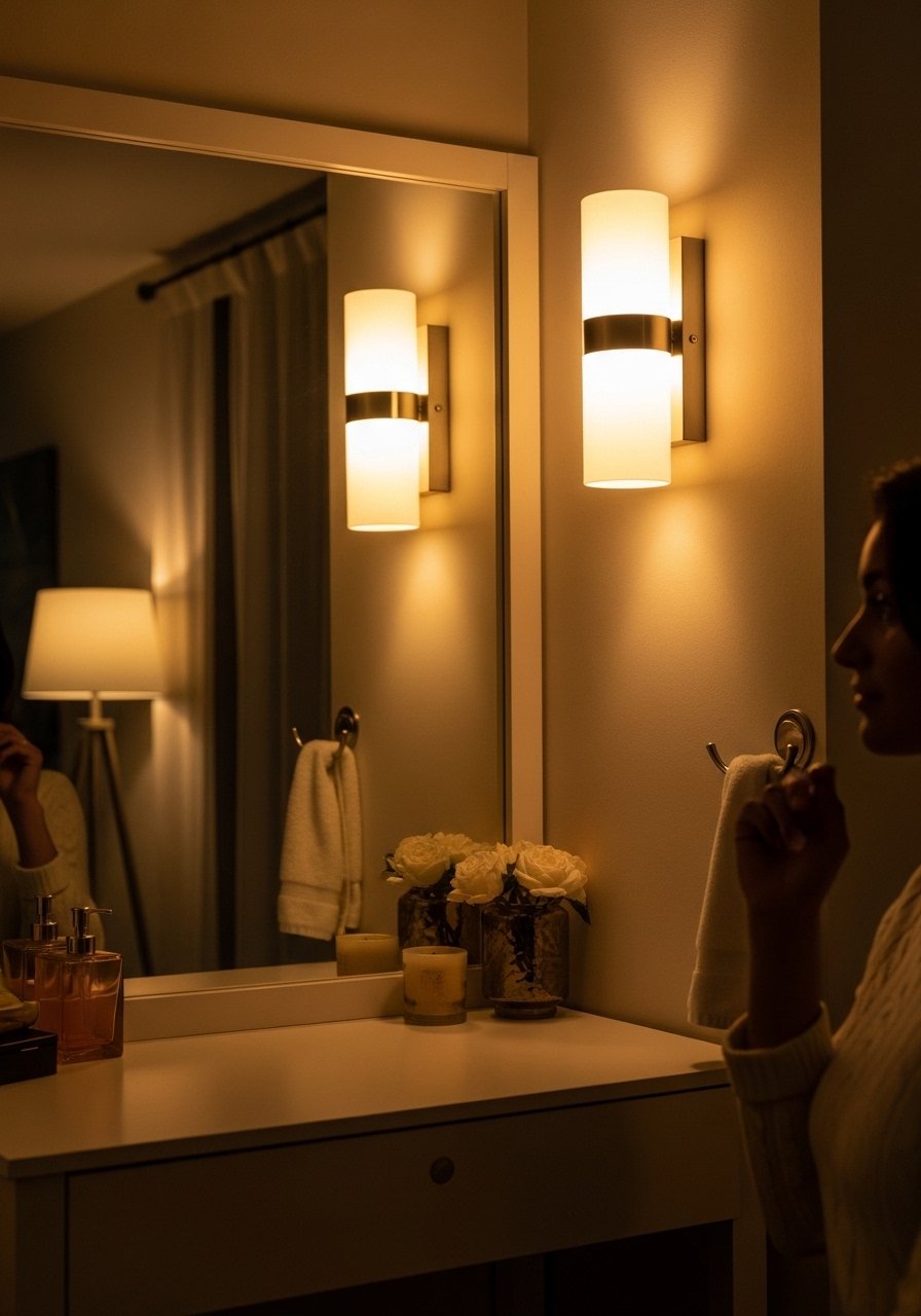 Lighting makes morning routines nicer. I use warm LED bulbs around 2700K for flattering skin tones. Budget $15-$60 for bulbs and shades. People pick daylight bulbs that are too harsh and unflattering. For makeup tasks use a bright warm bulb and a softer ambient light. LED vanity bulbs warm white are inexpensive and reduce shadowing. Make sure fixtures are rated for bathroom damp locations.