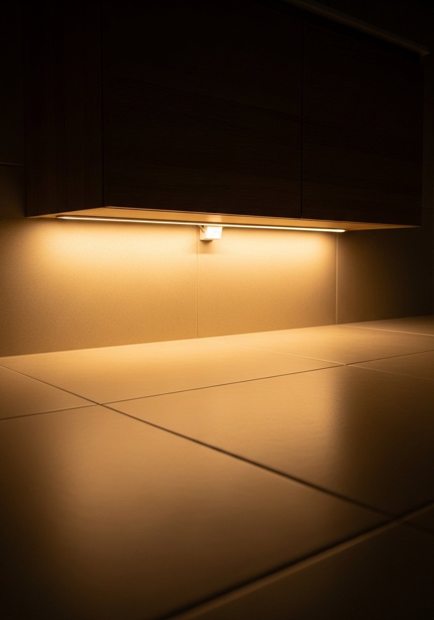 Under-Cabinet Strip Lighting for Night Use and Ambience