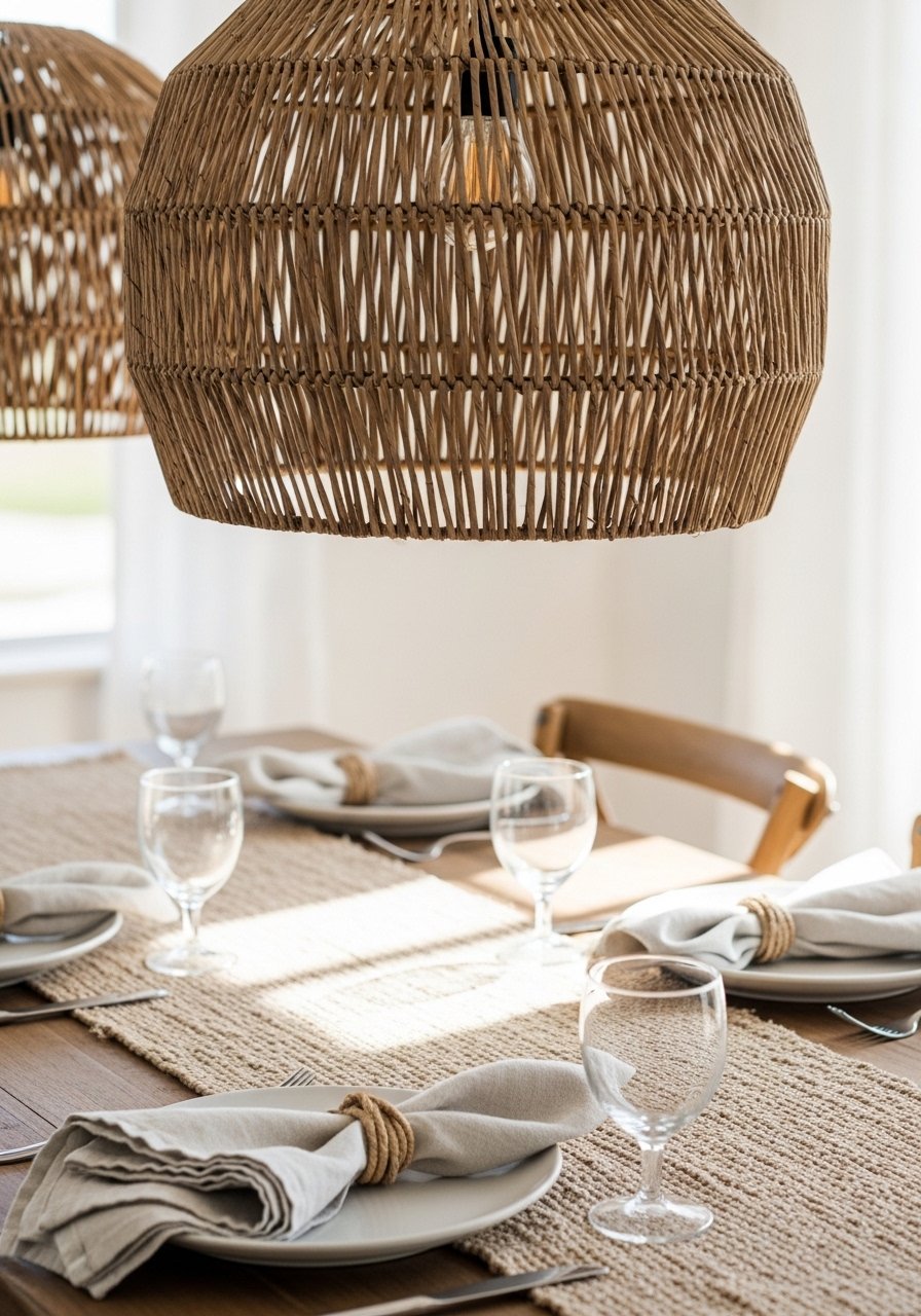 Rattan Pendant and Natural Lighting for Dining Warmth