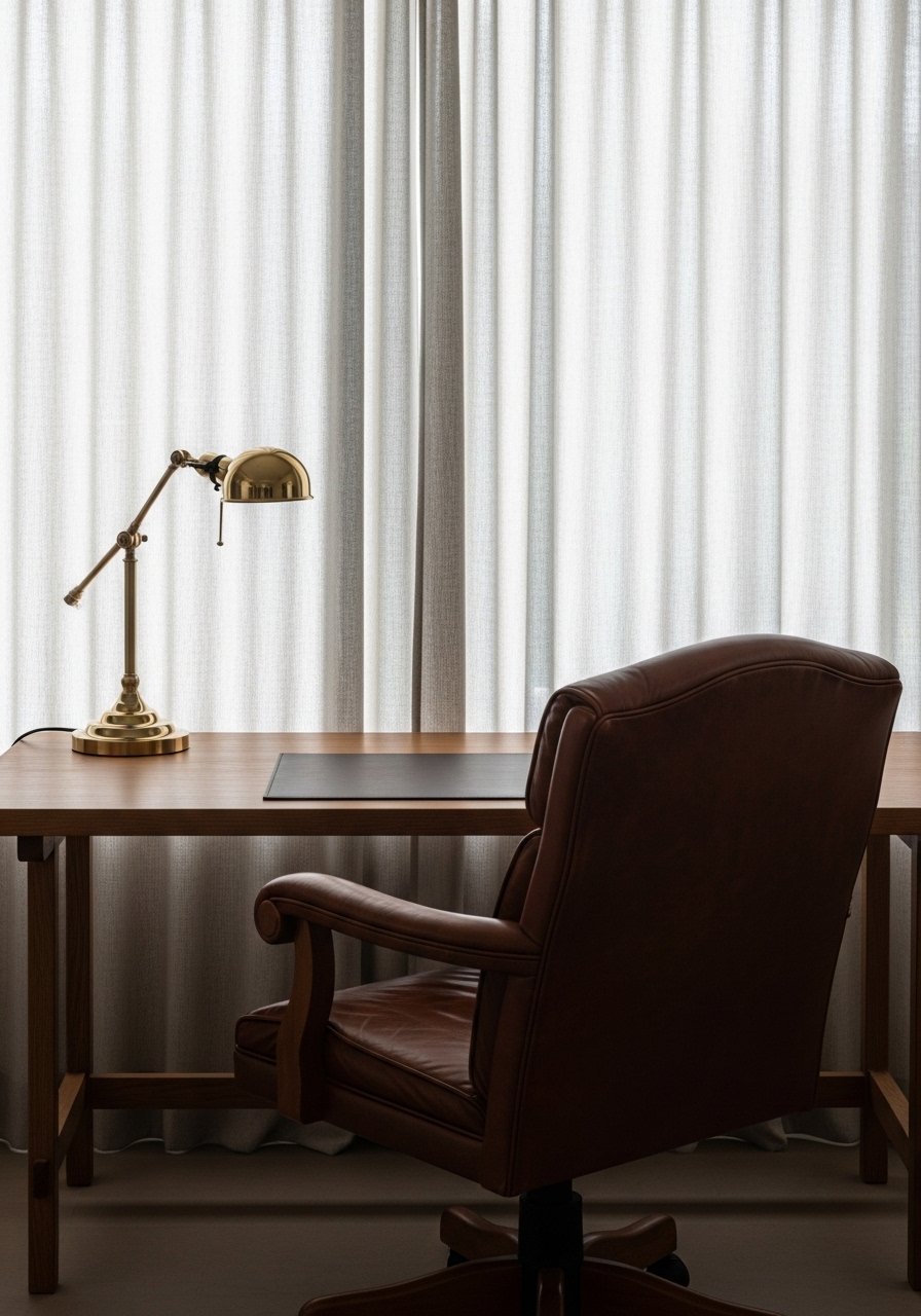 Neutral Office With Natural Materials and Task Light