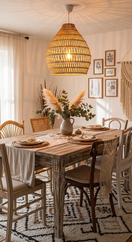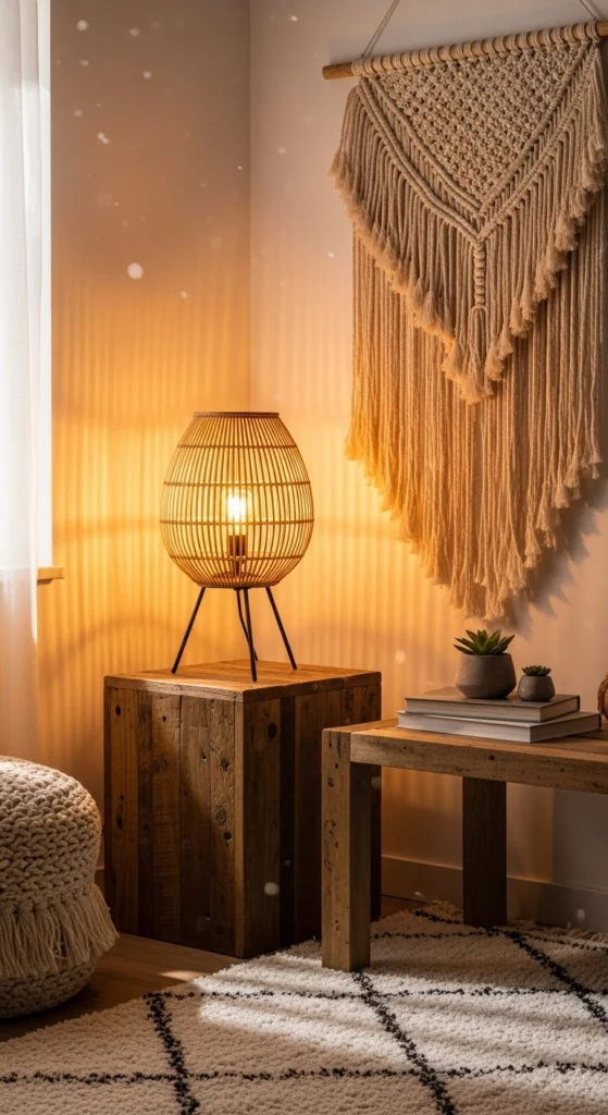 Wicker lighting softens rooms instantly. Swap harsh fixtures for woven pendants.