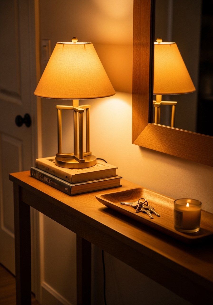 A small lamp next to a mirror gives layered light that makes evenings feel calm. I like the lamp as a nightly beacon when coming home late. The mirror multiplies the glow and makes a narrow hall seem deeper.