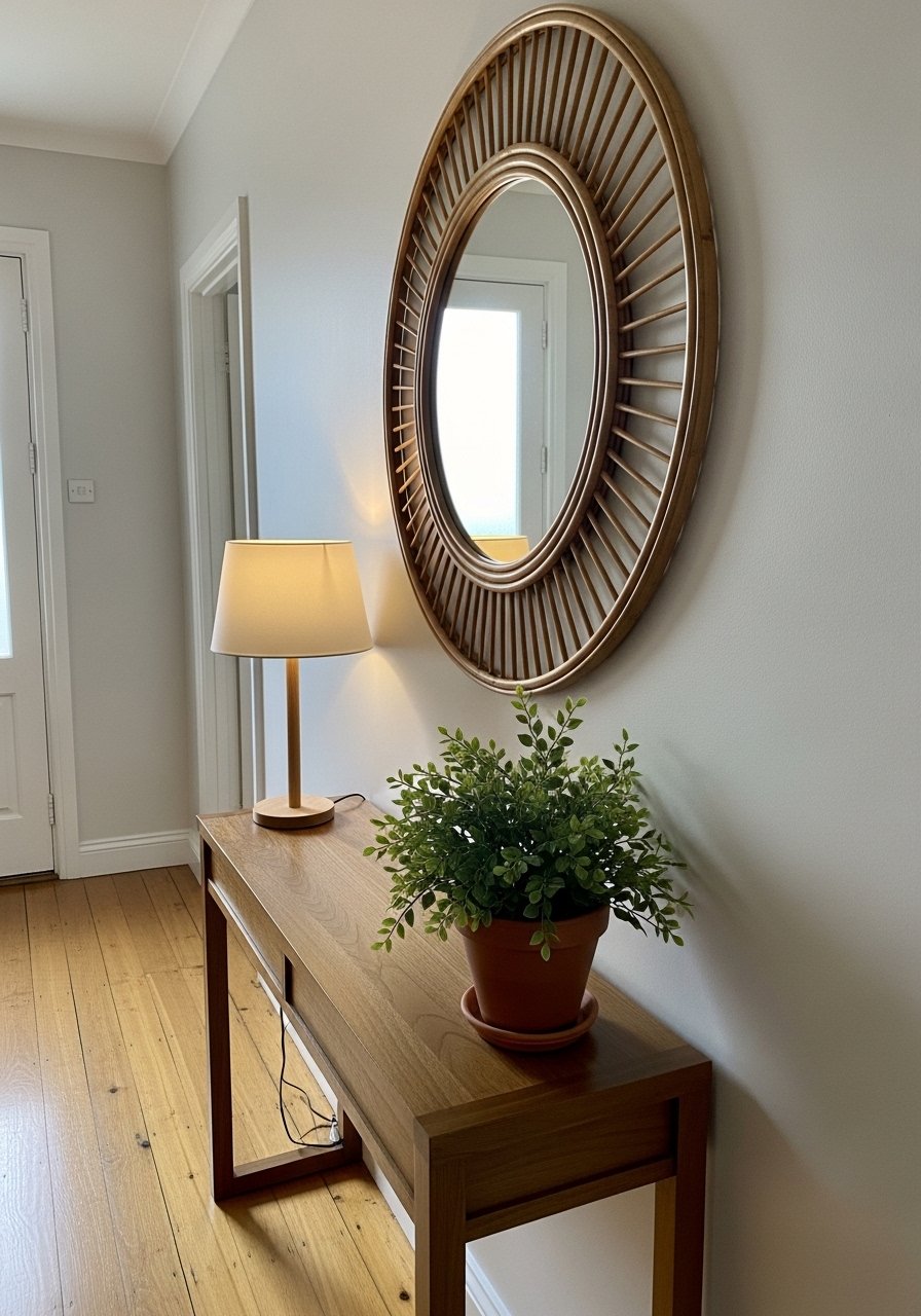 I swapped a painting for a round mirror and saw the hallway double in brightness. The mirror bounces lamp light and makes the space feel airier. I pair a lamp across from the mirror to amplify glow.