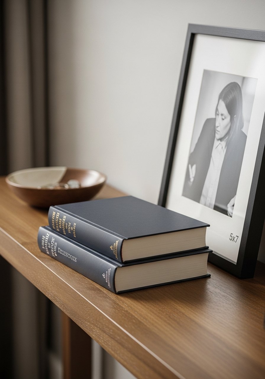 I learned that one thick book and one thin book look better than three similar spines. Mix sizes and finishes and keep the frame matte. This small combo personalizes without clutter.