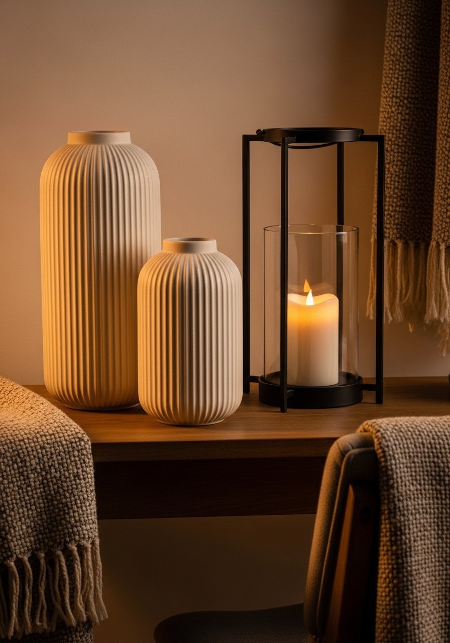 8. Lanterns and Ribbed Ceramics for Textured Warmth
