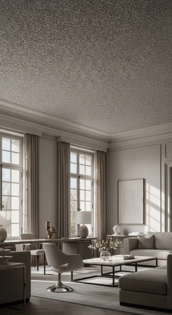 Ceilings matter more now. Try wood slats, fabric panels, or wallpaper overhead. For budget ideas, paint the ceiling a soft shade darker than the walls. This adds interest while staying simple.