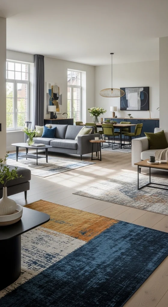 Use rugs, lighting, and furniture placement to define areas. A sofa back can act as a divider. A floor lamp marks a reading area. This makes large rooms easier to use.