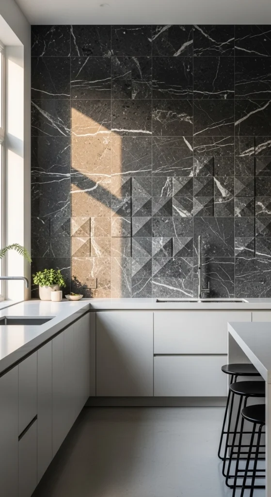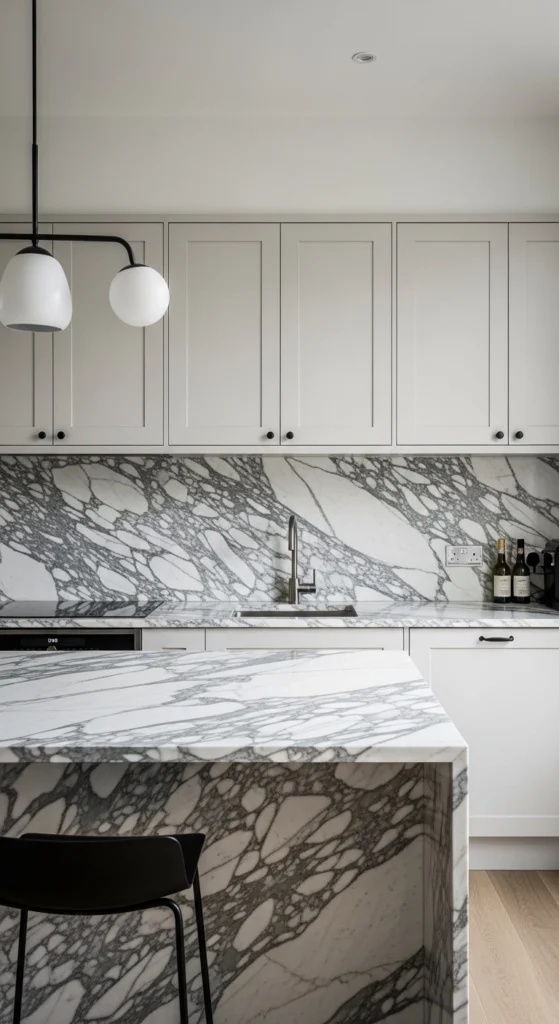Natural stone patterns add movement to simple rooms. Full countertops can be costly, so think smaller. Use marble-look contact paper on a coffee table or shelf top. Stone trays work well on consoles or vanities. Even a single slab-style cutting board adds impact. Keep surrounding decor simple so the stone stands out. This approach gives drama without large renovations.