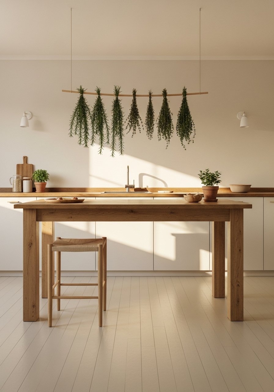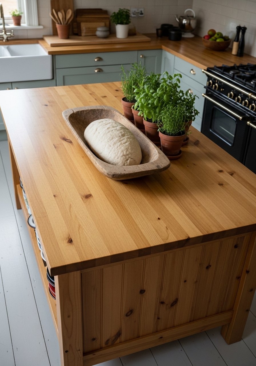 My early mistake was choosing dark stain that made the room heavy. I switched to natural pine and it opened the space. If you can’t afford a full island, try a portable wood cart with a butcher-top.