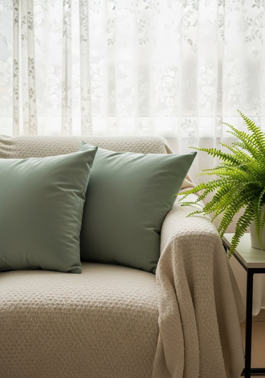 Sage green does something calm I didn’t expect. I swapped one or two pillows to soft sage and it read like spring without being loud. The cream base keeps it grounded and not matchy-matchy.