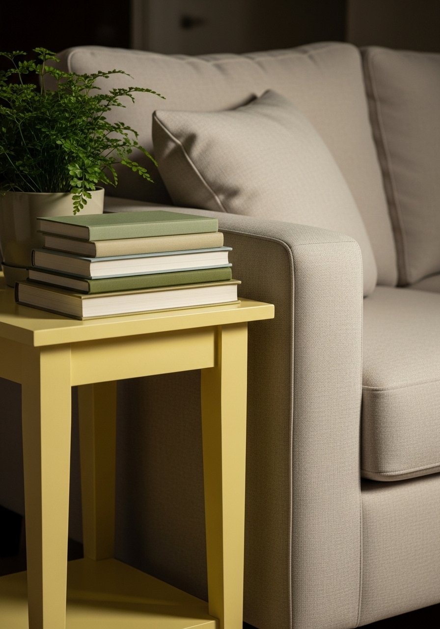 I added a butter yellow side table to a neutral living room and it instantly felt like spring without screaming color. The muted yellow reads warm and collected next to sage and cream.