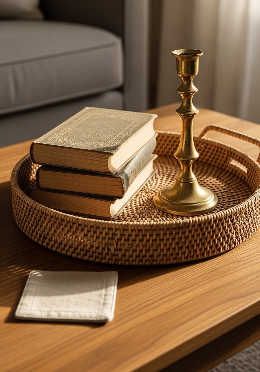 I once over-styled with too many books and it looked cluttered. Keep odd-numbered groupings and leave breathing room. Woven textures add softness and stop things from sliding.