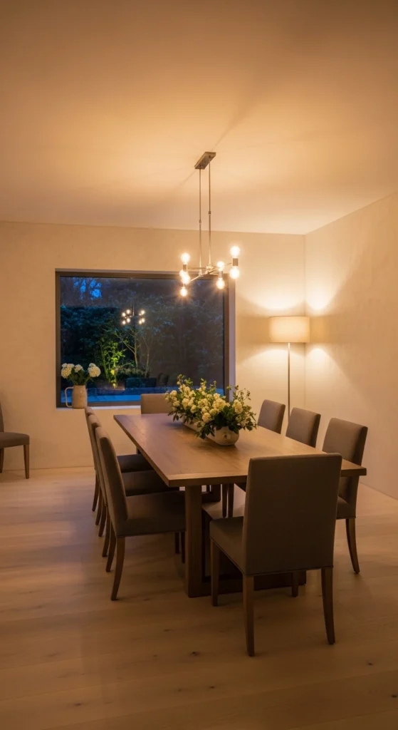 Wall lights add glow without taking table space. Plug-in sconces avoid wiring costs. Place them near art or mirrors. This soft lighting flatters food and faces.