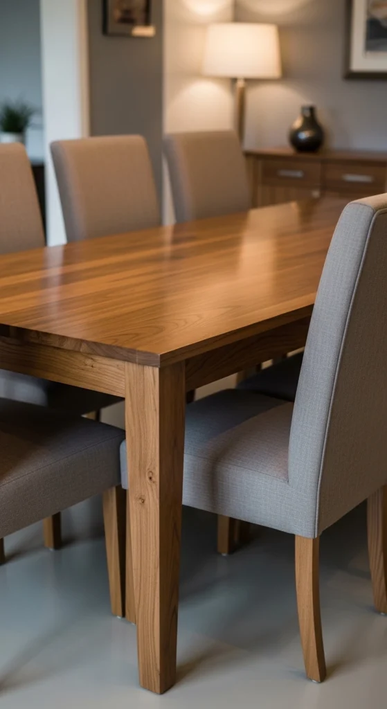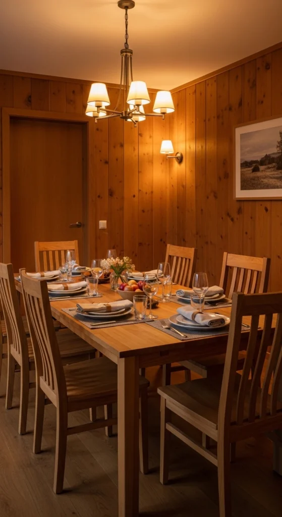 Lighting changes everything. A large pendant draws the eye down to the table. It sets mood without clutter. Look for woven, ceramic, or metal shades. Budget options exist online and at lighting outlets. Install a dimmer switch for flexibility. Even simple meals feel special under soft lighting.