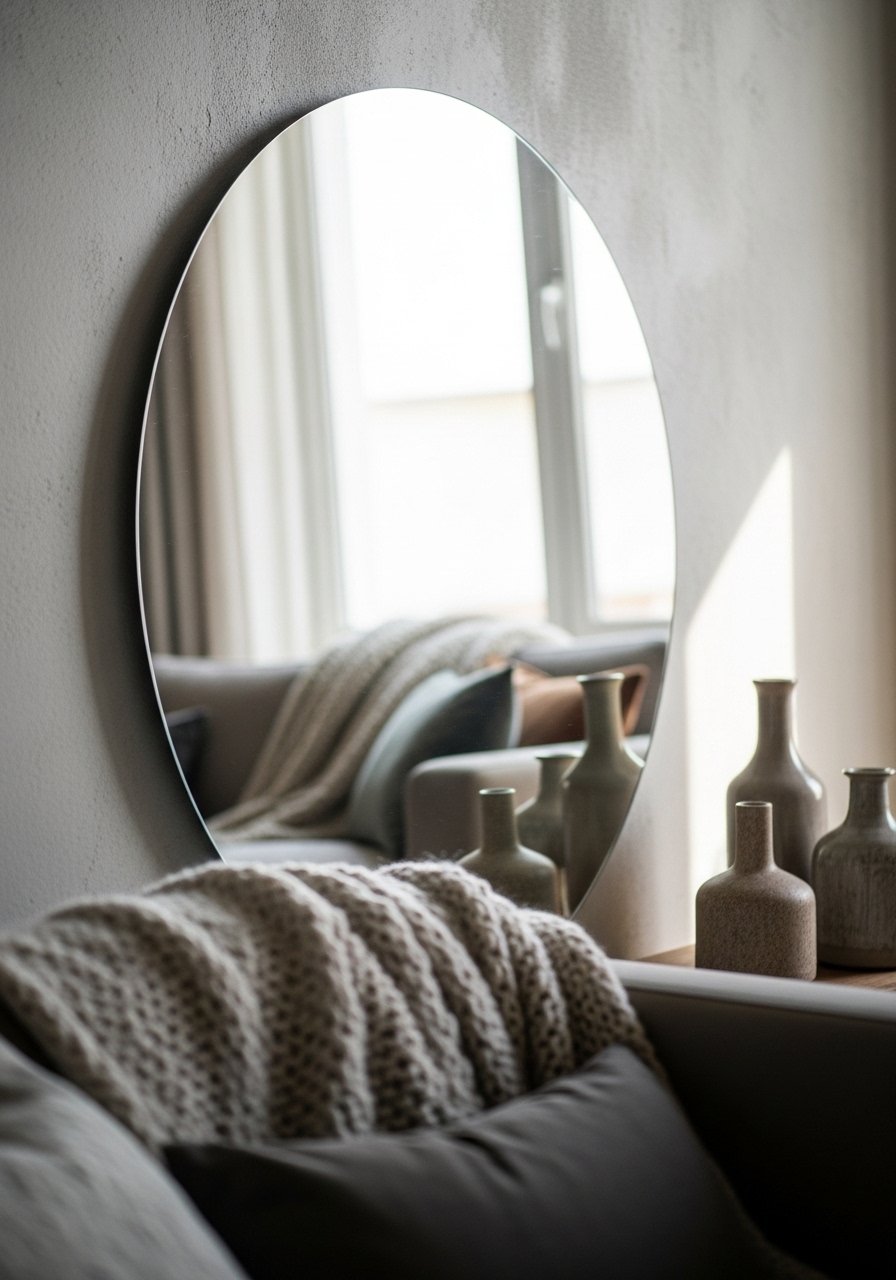 I leaned a 36-inch round mirror above my console and it immediately doubled the light in a dim entry. The circular shape softens angular furniture and creates an instant focal point. I paired it with this 36-inch round mirror and a stack of books on a white oak shelf. Avoid hanging it too low — if it cuts off a sofa back, the composition feels off. Mirrors are simple but powerful for opening tight spaces.
