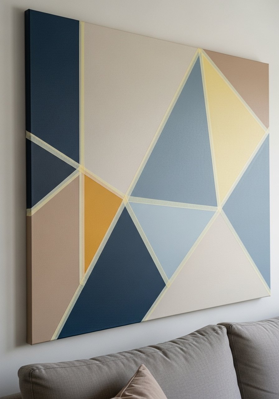 I used painter’s tape and latex paint to create bold geometric abstracts on canvas. It’s affordable and makes a large statement for little cost. Choose 2–3 colors from your room’s palette to keep it cohesive. I framed the finished piece in a thin black frame for contrast. Don’t overcomplicate the pattern — simple lines read modern. This approach is perfect when you want impact without high-priced original art.