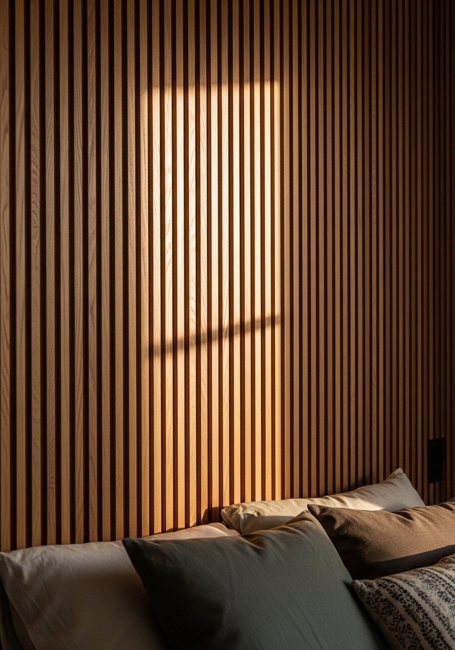 Vertical Wood Slat Accent for Subtle Texture and Warmth