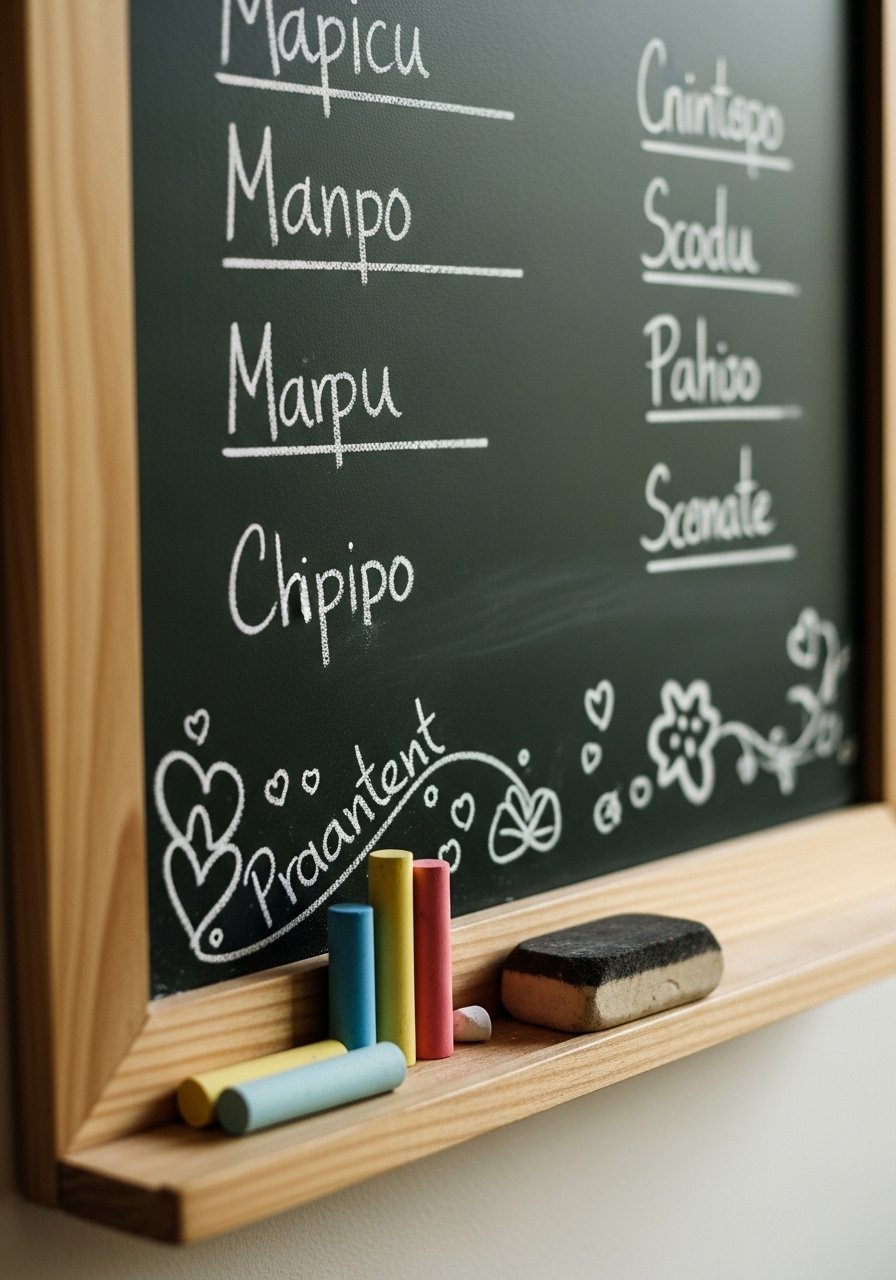 I painted a framed section of wall with chalkboard paint for menus, quotes, and seasonal doodles — it’s playful and useful. Framing it keeps the look tidy. Use liquid chalk markers for cleaner lines. A common mistake is painting too large a surface; keep it a defined panel. This keeps the wall visually interesting and functional, especially in kitchens where notes and lists live. It’s easy to refresh and very renter-friendly.