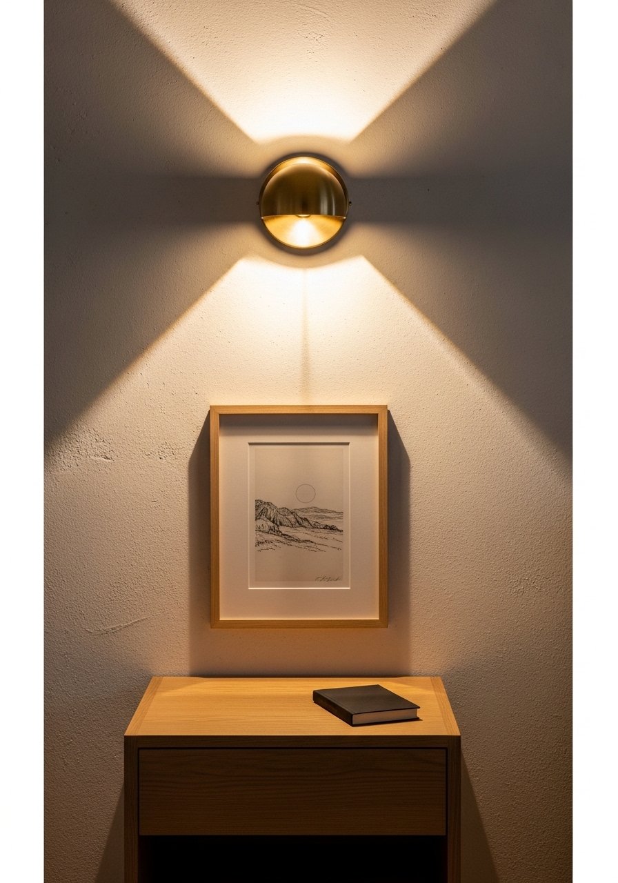 I added minimalist brass wall sconces to flank a piece of art above my bedside table and it created a hotel-like composition. Hardwire or plug-in options work depending on rental rules. I chose warm Edison LED bulbs for soft light. Don’t hang sconces too low; they should illuminate eye level rather than the pillow. This pairing elevates the wall and removes the need for busy lamps, keeping nightstands clean and chic.