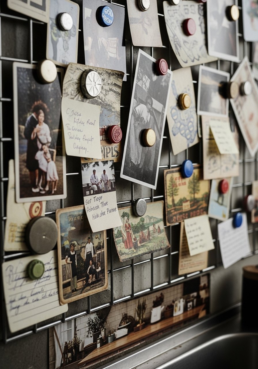 I mounted a magnetic grid and clipped photos with small magnets for an ever-changing display that’s easy to update. It’s great for renters and busy households. Keep magnets subtle and use a consistent color palette for photos to avoid visual noise. I used matte black grid panels and small brass magnets. A mistake is overfilling the grid; leave negative space for clarity. This solution reads modern and flexible — swap items seasonally.