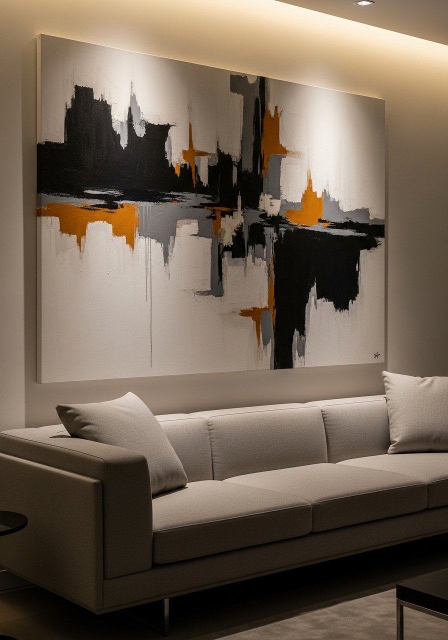 I purchased a large canvas print to anchor a wide wall and it anchored the whole room instantly. Oversized art simplifies styling and avoids small pieces that get lost. Match the dominant tones to your room and keep surrounding decor minimal. I chose a warm neutral abstract to complement wood finishes. Common mistake: hanging too low — top of frame should sit above eye level when furniture is present. Large-scale pieces read expensive and are surprisingly budget-friendly.