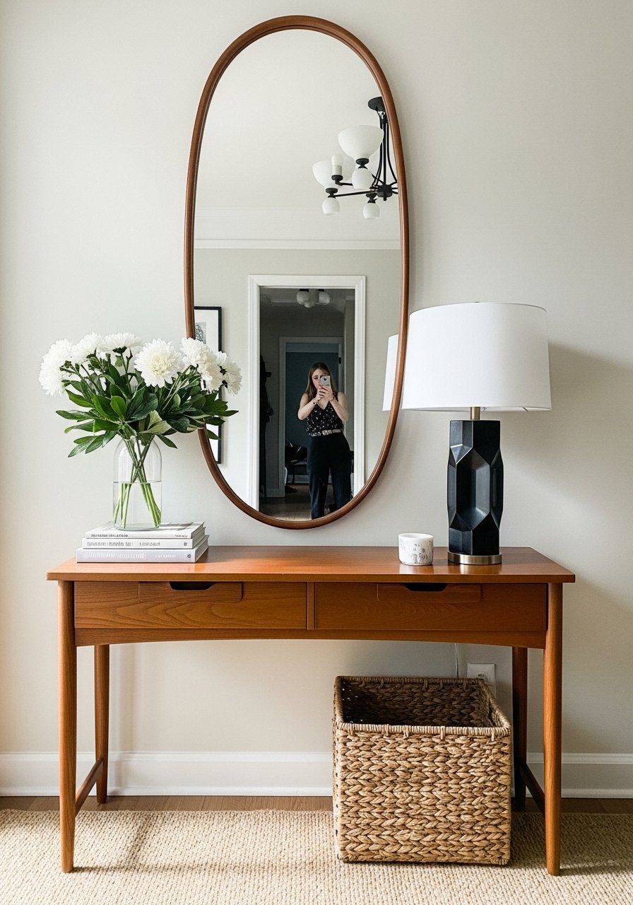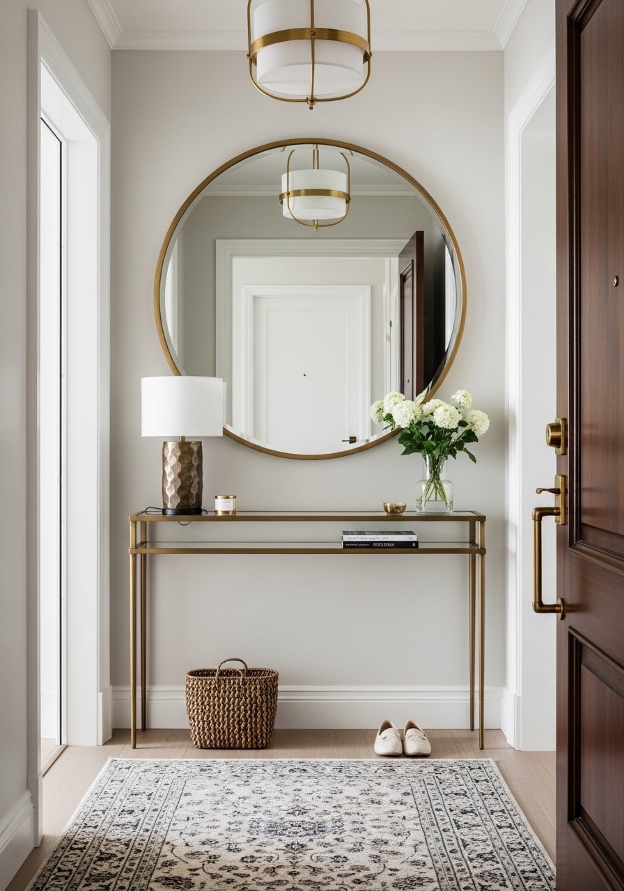 A large round mirror brightened my narrow foyer and made the space feel wider instantly. I chose a 36-inch piece with a thin brass frame for warmth. Pair it with a slim console and a woven basket for shoes. Avoid placing a mirror directly across a cluttered wall; it only amplifies mess. Mirrors are one of the easiest ways to bring light in and make a compact area feel airy and intentional.