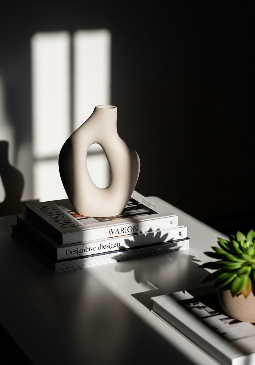 I place one or two sculptural objects on a coffee table with stacked books to make surfaces look considered. A ceramic or plaster form reads like art without needing a gallery budget. Pair with a small plant or candle for softness. Avoid cluttering the table with many small, unrelated items. The sculptural accent creates an artful focal point and makes everyday surfaces feel curated.