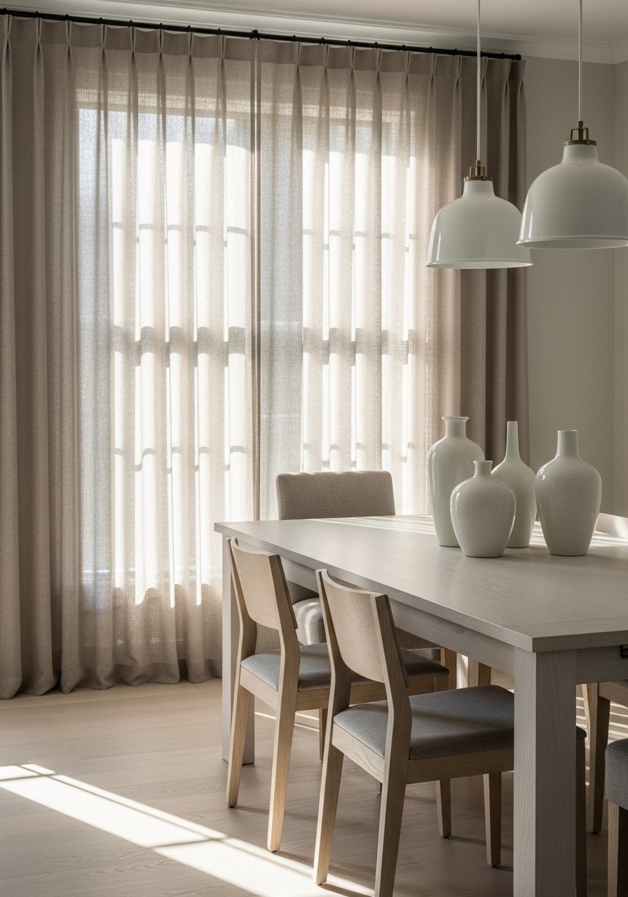 I swapped cheap blinds for linen blend curtains that touch the floor to add softness and height. I used linen blend curtains, 84-inch hung close to the ceiling. Curtains that puddle or kiss the floor look intentional and make rooms feel taller. Avoid hanging them too low or leaving a gap at the top. Textured window treatments frame light and add an elegant, collected layer.