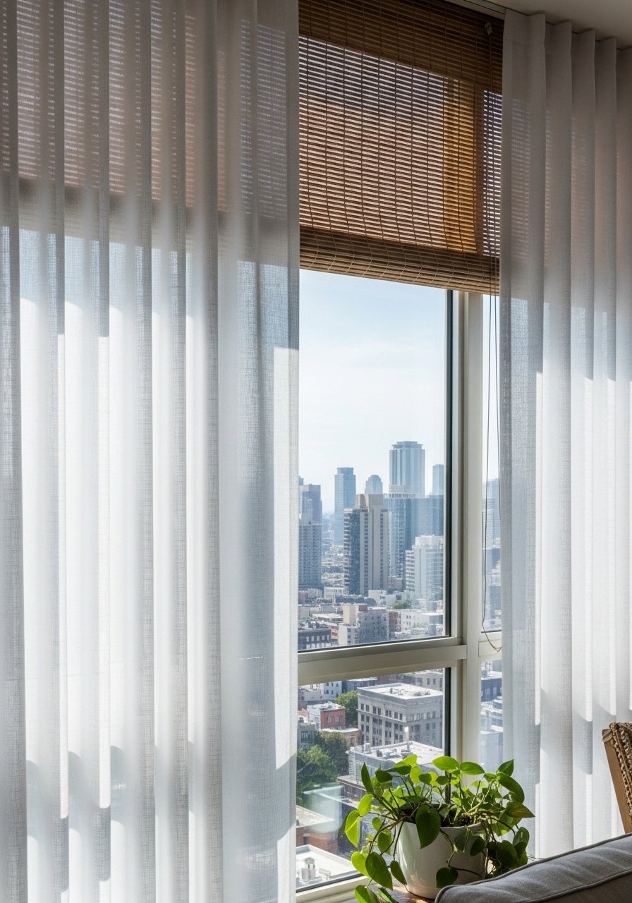 - Linen blend curtains, 84-inch (~$30-50 per panel)
