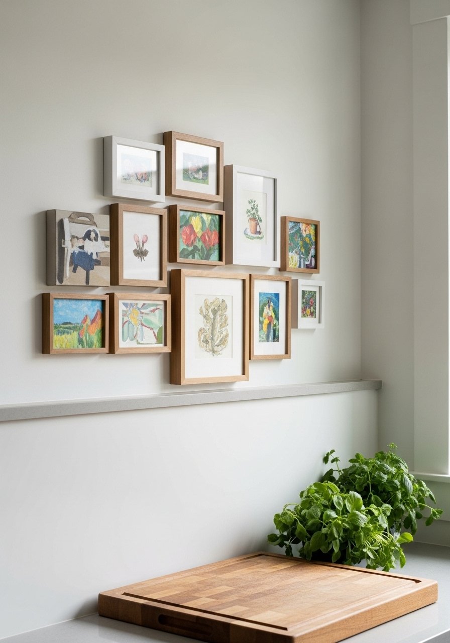 Small-Scale Art Groupings Above a Kitchen Backsplash