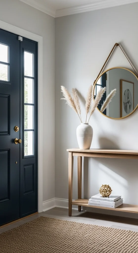 Beige, taupe, and soft gray feel calm and timeless. These shades hide scuffs better than bright white. Sample small paint cans before committing. A single gallon can cover most entryways on a budget.