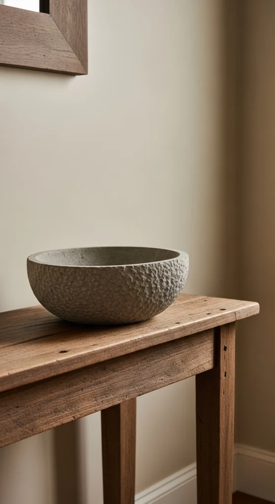 Stone adds quiet texture. Small bowls or trays work well. No large investment required.