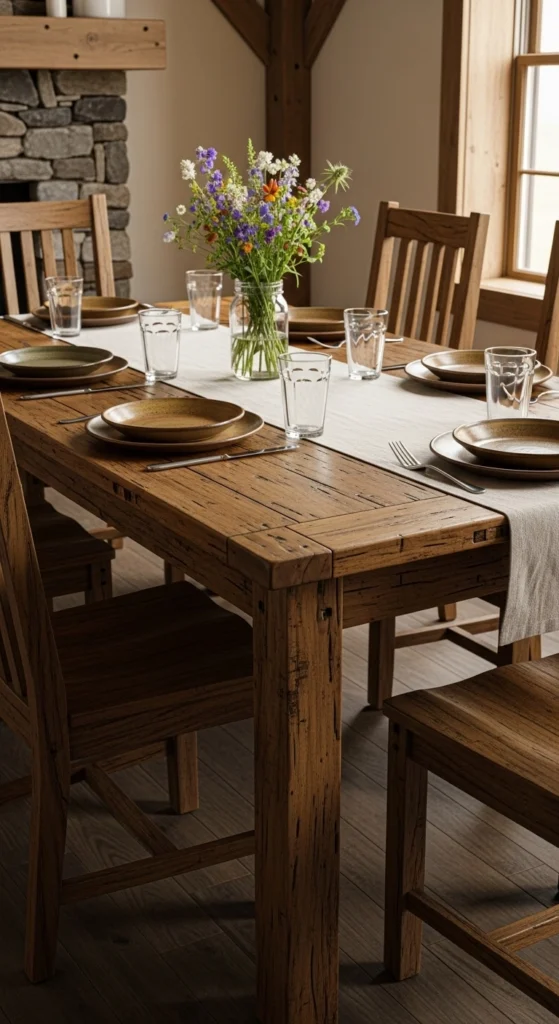 Table styling adds warmth daily. Use a runner instead of a full cloth. Add a bowl or simple centerpiece. Change items seasonally without buying new furniture.