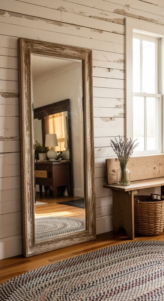 Mirrors add light and depth. Antique-style frames bring character. Check flea markets or thrift stores. Hang mirrors where they reflect natural light. One mirror per room is enough.