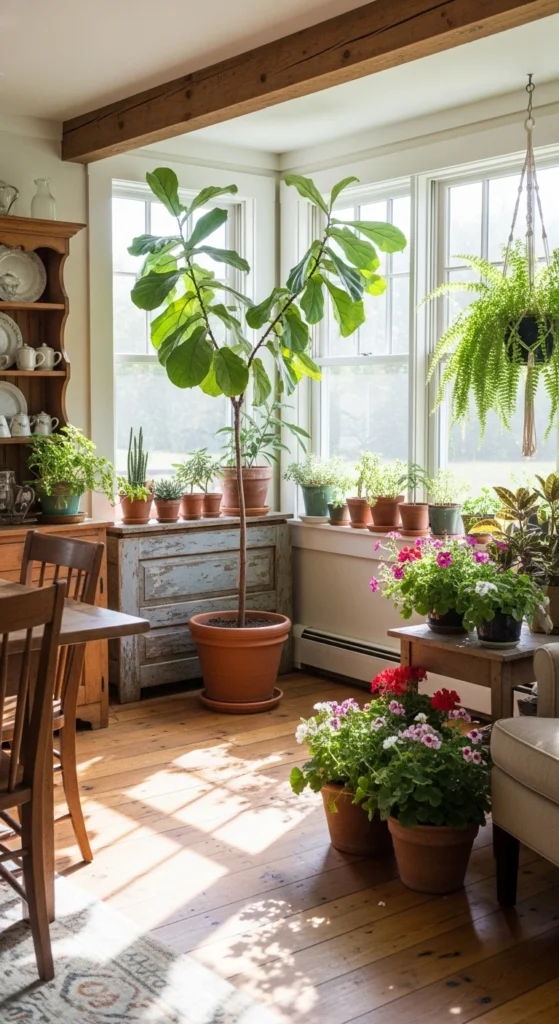 Plants add life. Choose low-care options. Group plants in odd numbers. Use clay or stone pots. Avoid fake greenery when possible. Even herbs work well in kitchens.