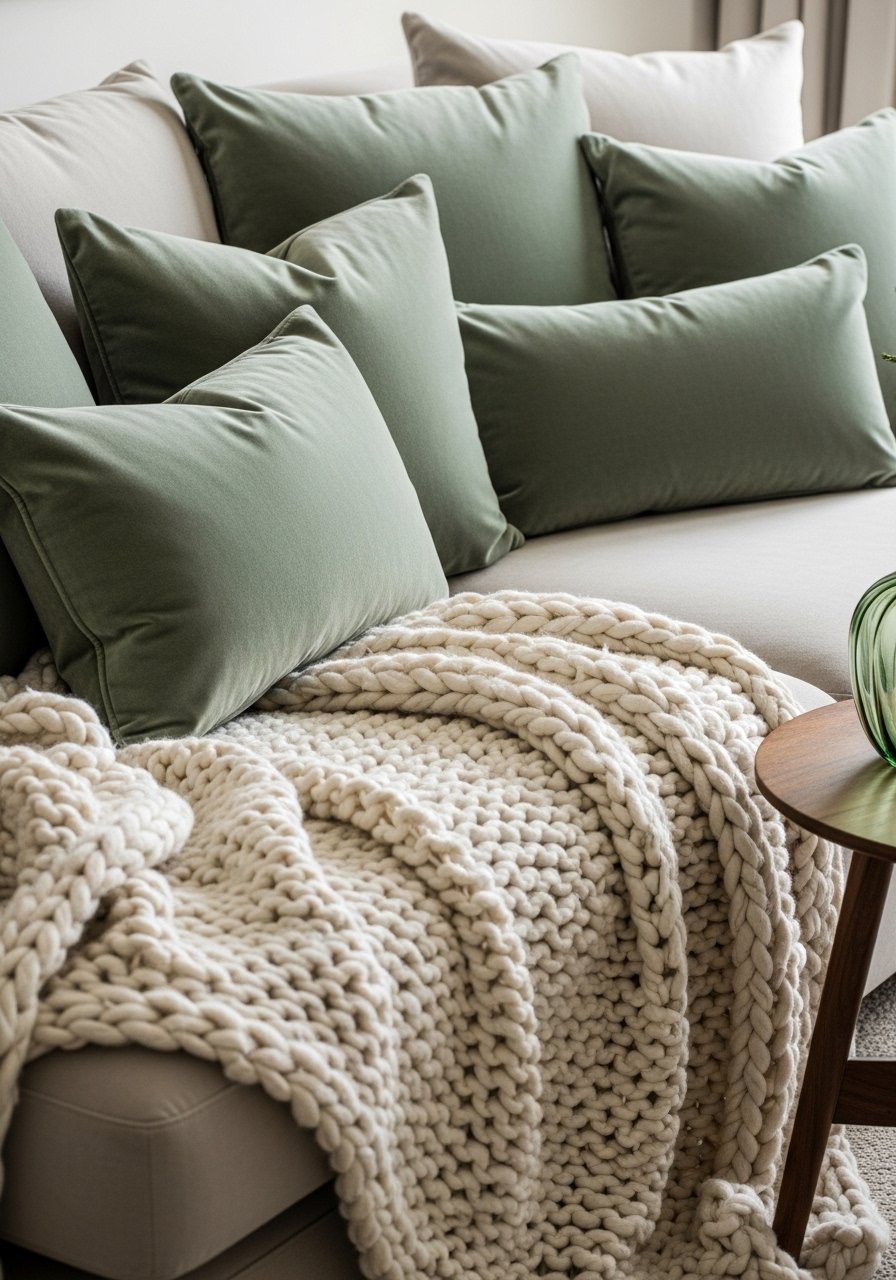 Layered Sage Textiles for a Cozy Living Room
