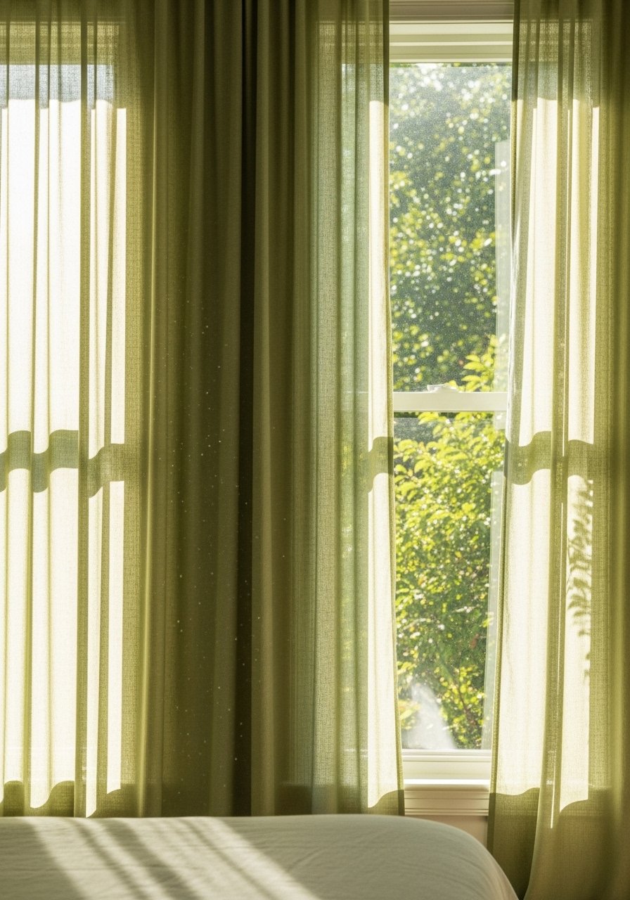 I replaced opaque drapes with 84-inch linen-blend curtains in a muted sage. They let light filter without sacrificing privacy. Hang them high—just below the ceiling—to give height. Avoid panels that stop mid-wall; either kiss the floor or puddle slightly depending on style. I pair these with simple oak rods and neutral bedding. The result is airy, calm, and lived-in. Linen’s texture keeps the look casual and layered, perfect for a restful bedroom.
