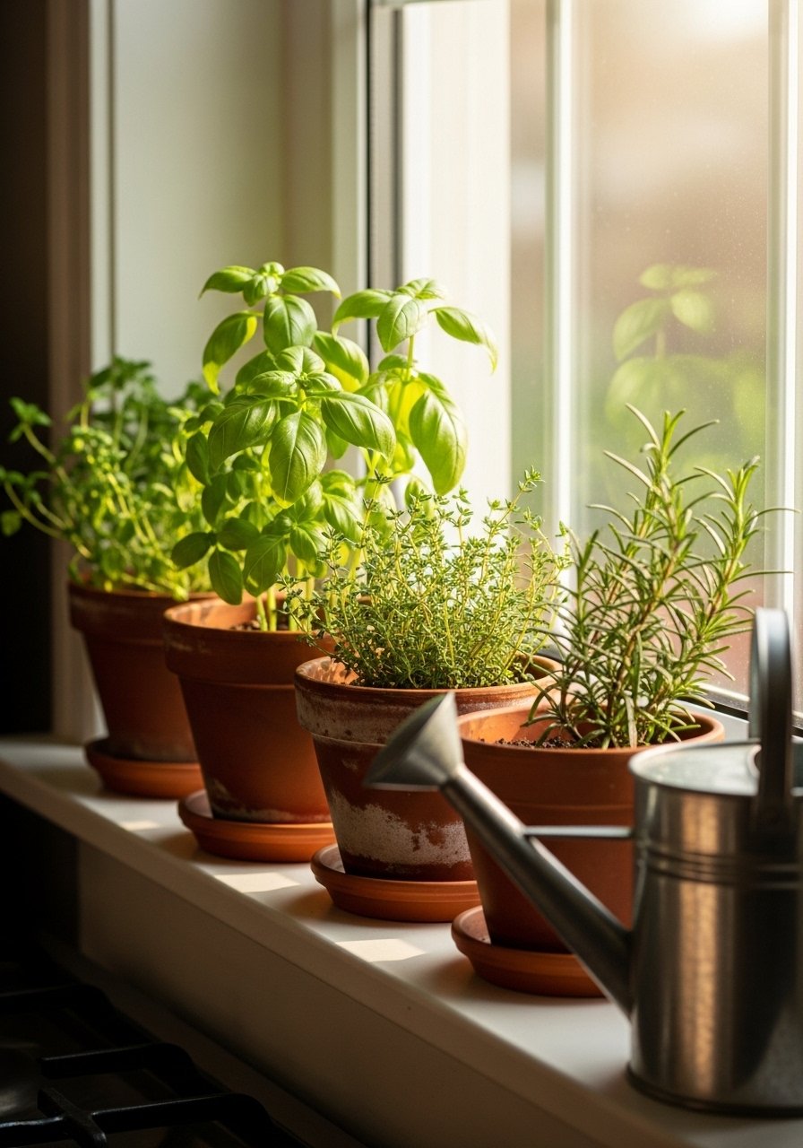 Mini Herb Garden on Kitchen Windowsill for Fresh Green Touch