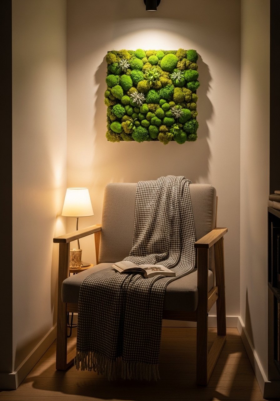 Sculptural Moss Art Panel for a Quiet Corner in a Reading Nook