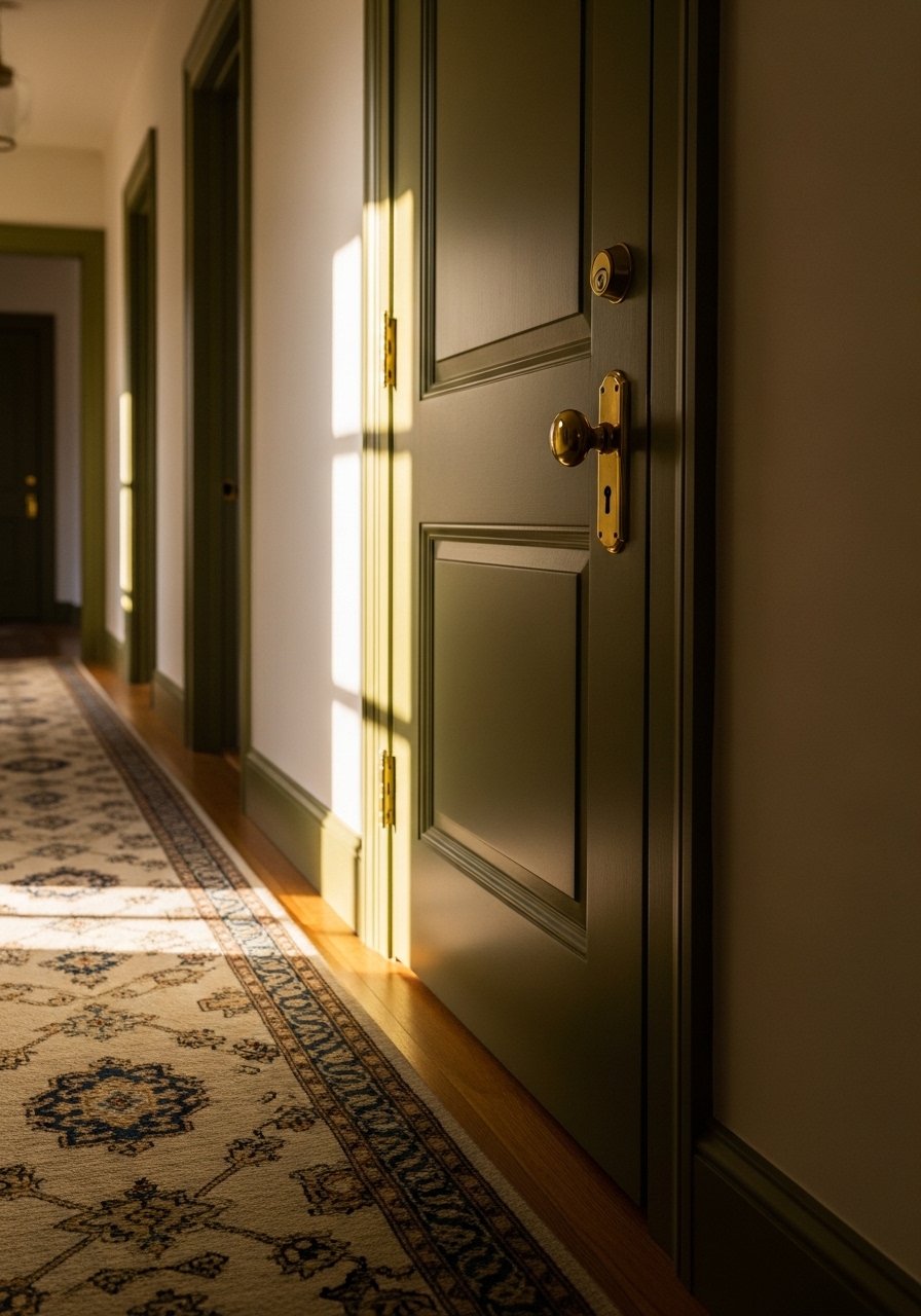 Green Accent Doors for an Unexpected Pop in a Hallway