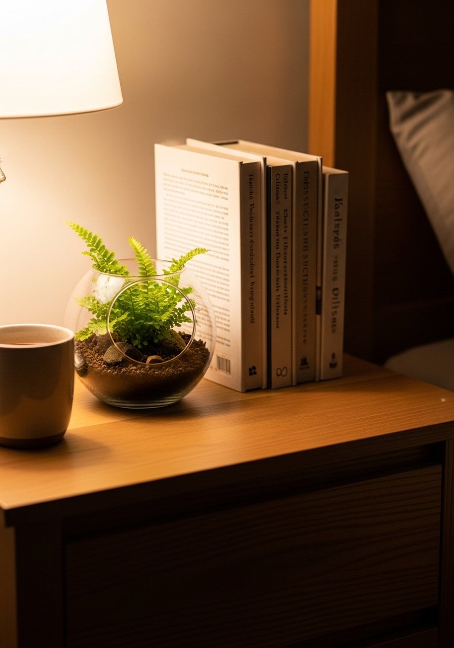 Mini Fern Terrarium on a Nightstand for Bedroom Calm