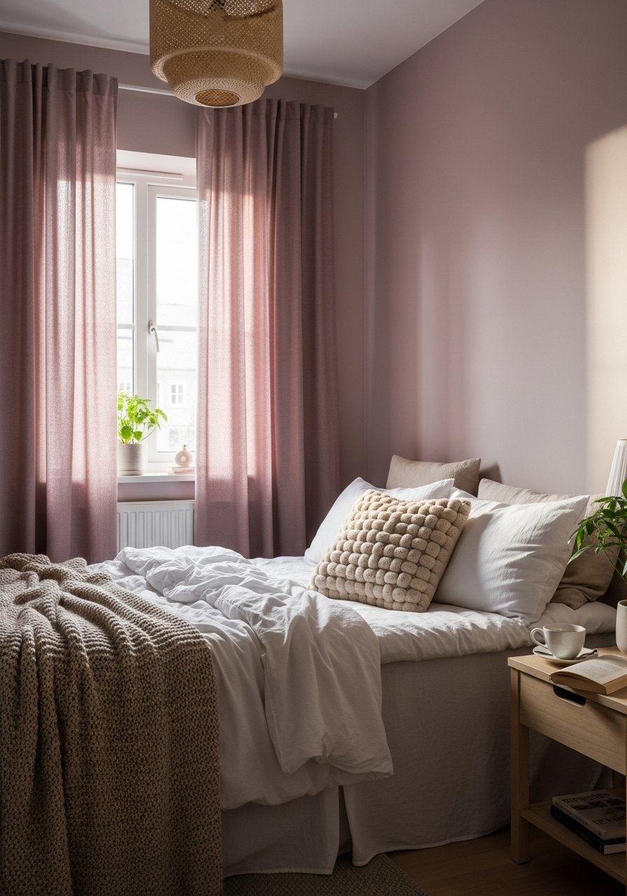 I painted a guest room mauve and it calmed the whole space. Using the same family — walls, curtains, a throw — creates an enveloping, emotional backdrop without feeling purple-heavy. My mistake was choosing a mauve with too much pink; switching to a dustier tone made it adult and comfortable.