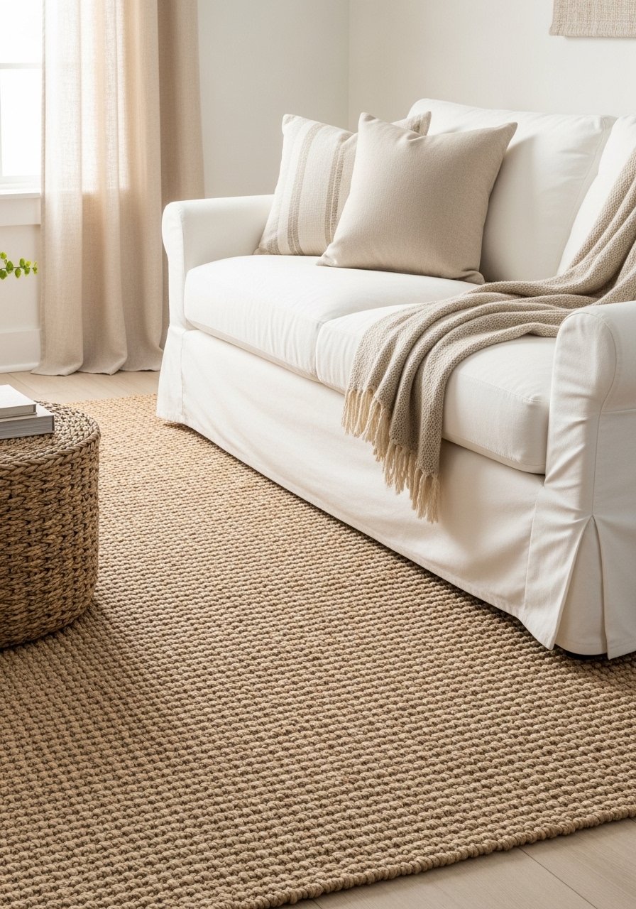 Pair with linen slipcovers for a casual, coastal-cottage vibe. The look feels lived-in and light. My tip: a rug pad prevents slipping and makes the texture feel more luxurious.