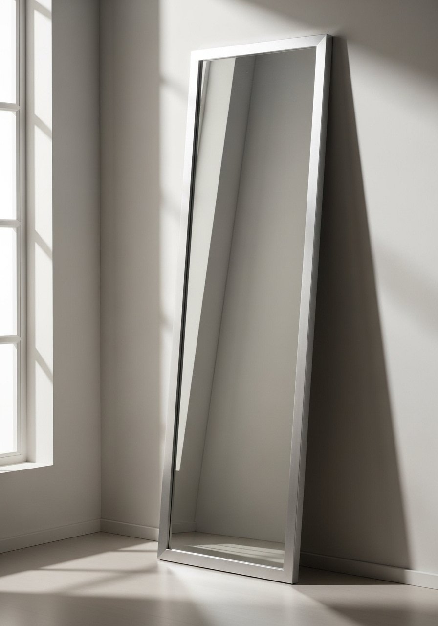 - Large leaning mirror (silver frame)